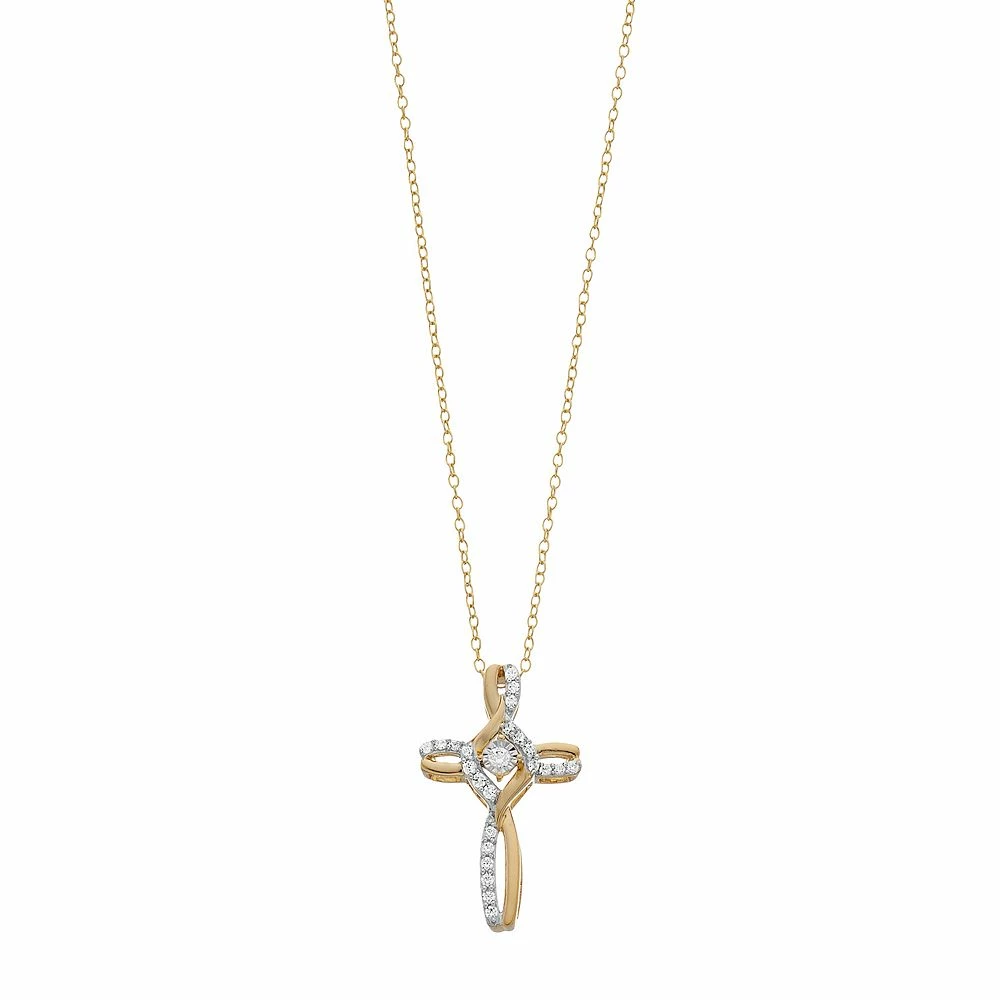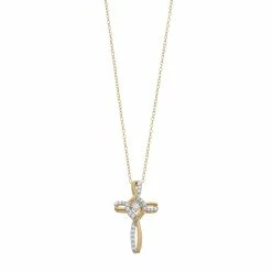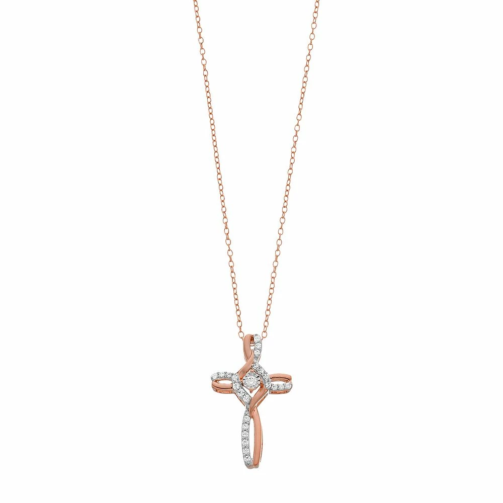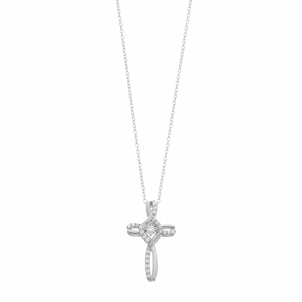 Crafted from sterling silver, and adorned with dazzling round-cut diamonds, this beautiful cross pendant is simply lovely.