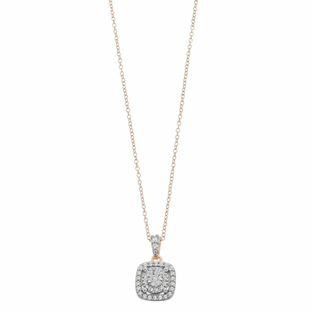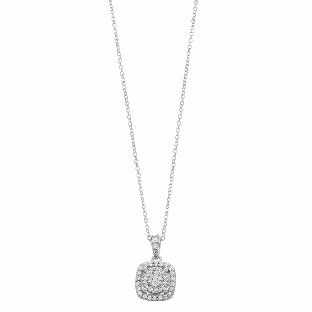 Turn heads with this 1/4 Carat T.W Diamond Cushion Pendant Necklace.