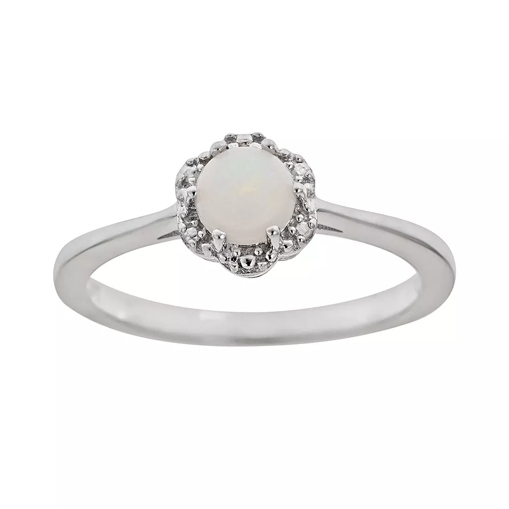 How lovely. A round-cut genuine opal stone makes this flower ring the perfect pick. Accentuate your natural beauty with this sterling silver ring.