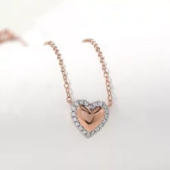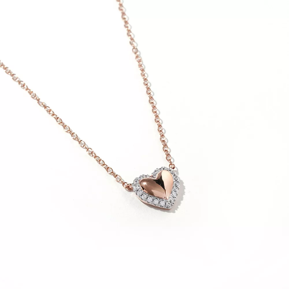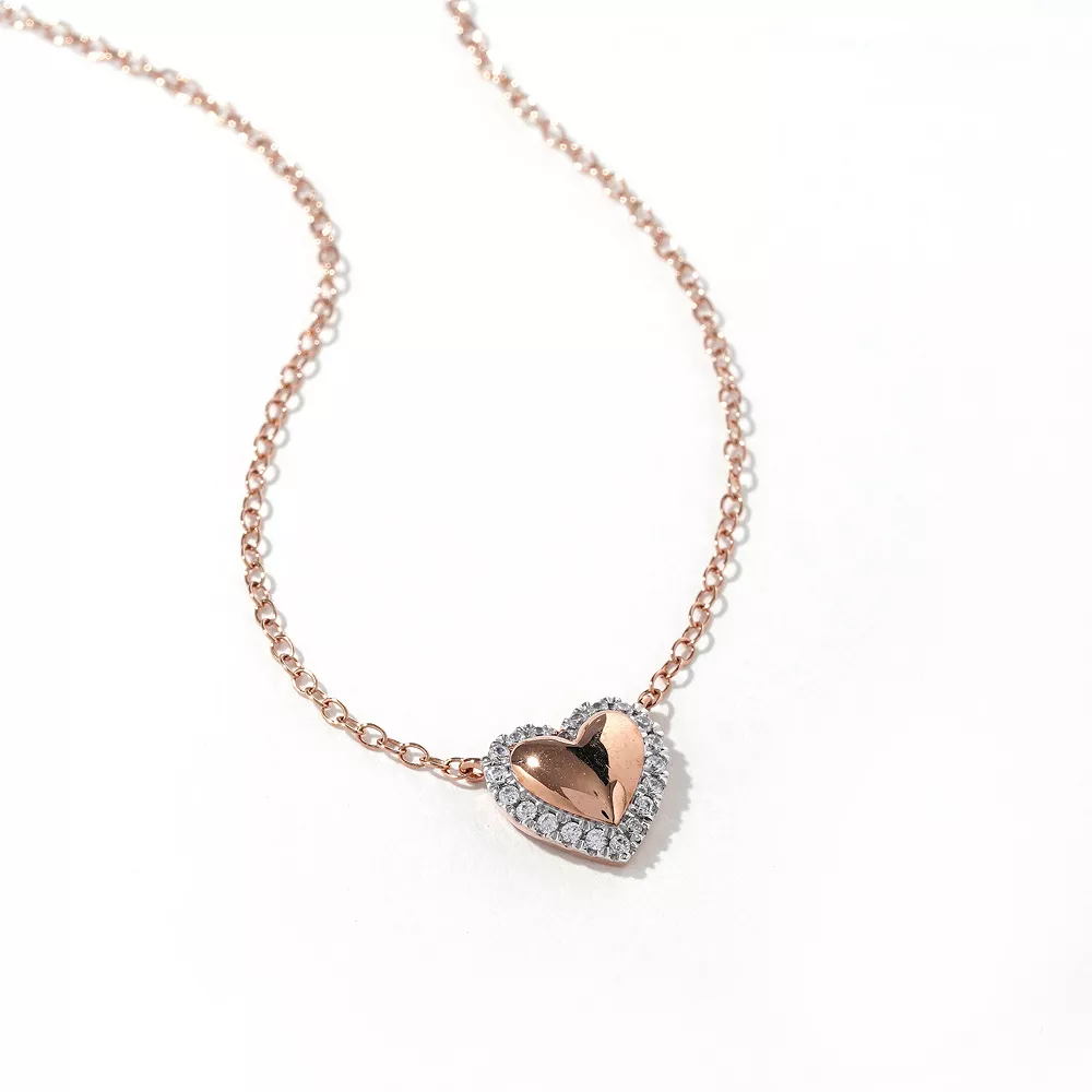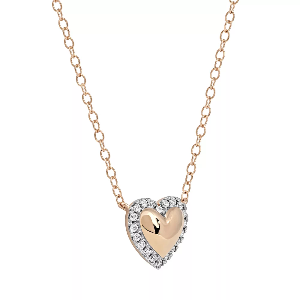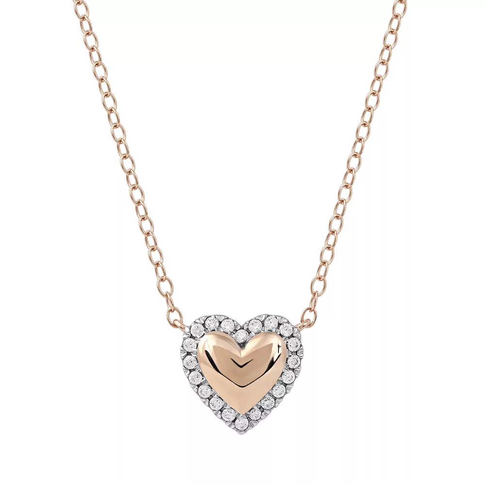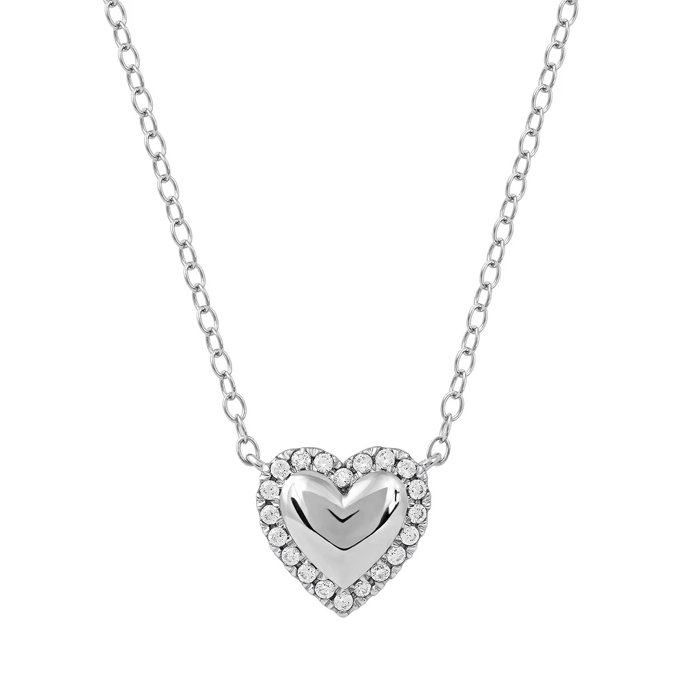 Fashioned in sterling silver, this heart-shaped DeCouer design showcases a polished-finished center surrounded in a diamond-lined border.