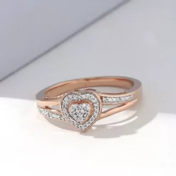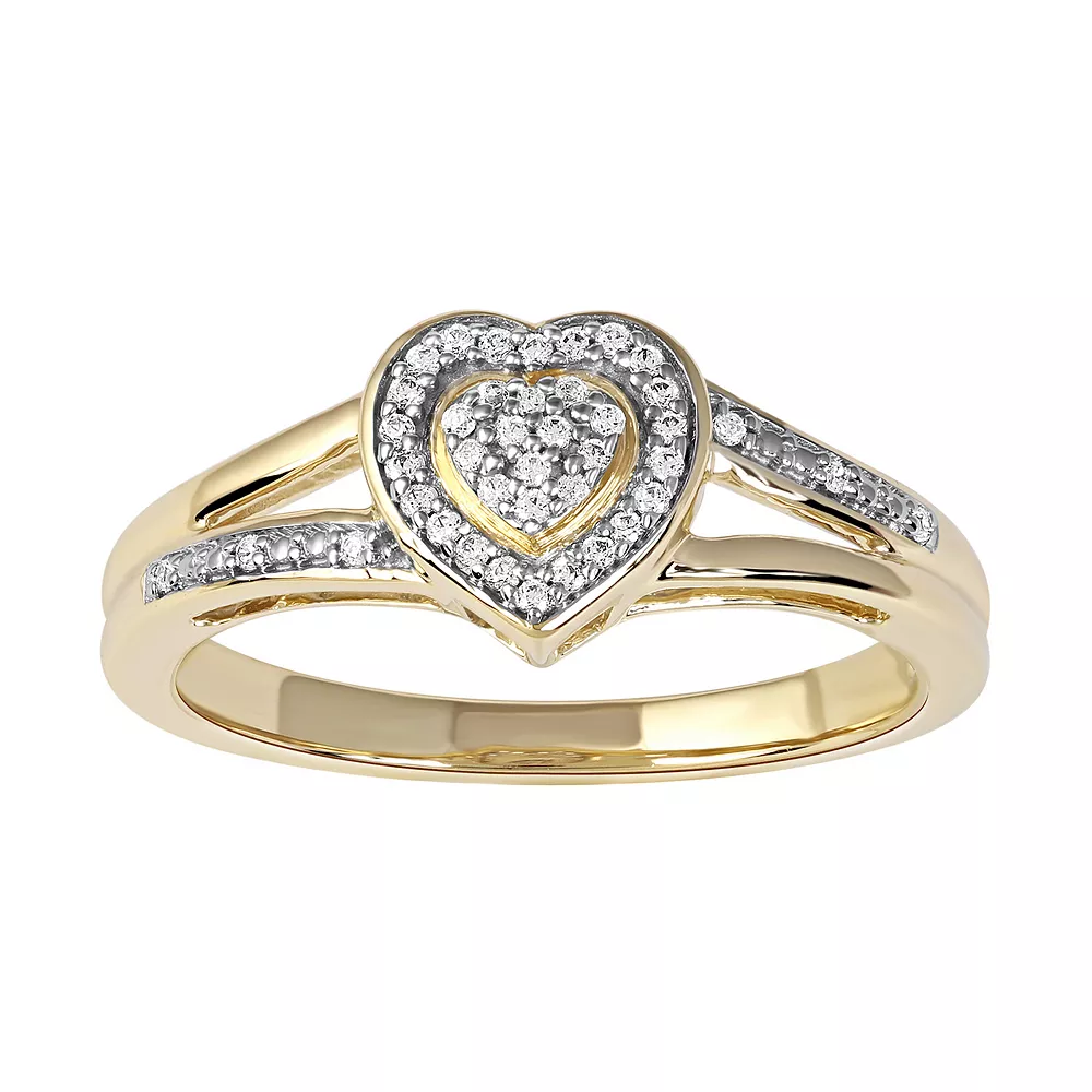 Dazzling with diamonds in a heart motif, this DeCouer promise ring makes an elegant accessory.