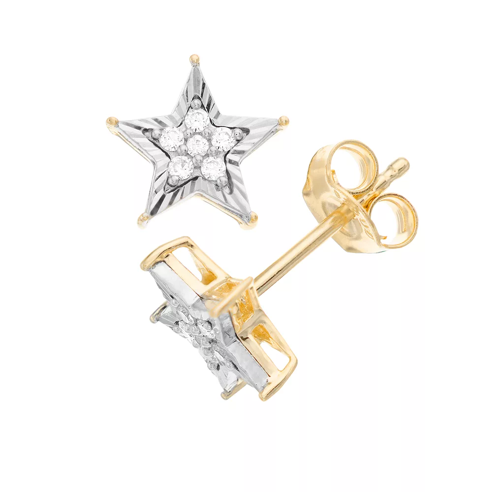 Featuring star-shaped clusters of diamond accents, these Diamond Brilliance stud earrings lend a touch of sparkle to any ensemble.