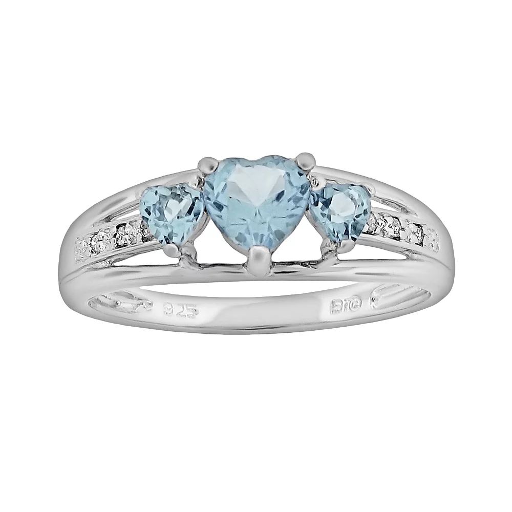 Radiant romance. Three heart-cut, lab-created aquamarine stones illuminate this sterling silver ring. Pair this beautiful ring with a new pendant for a look you’re sure to love.