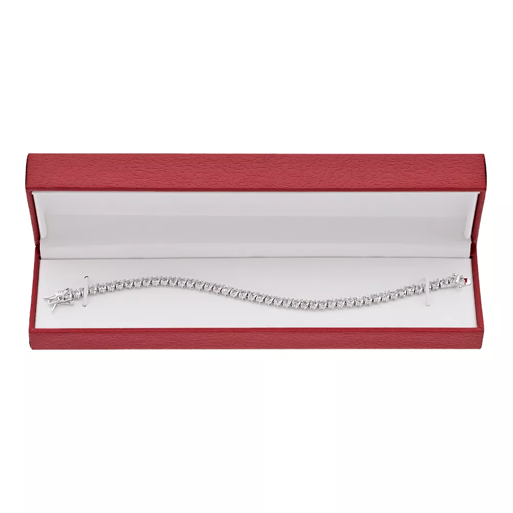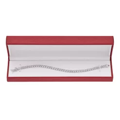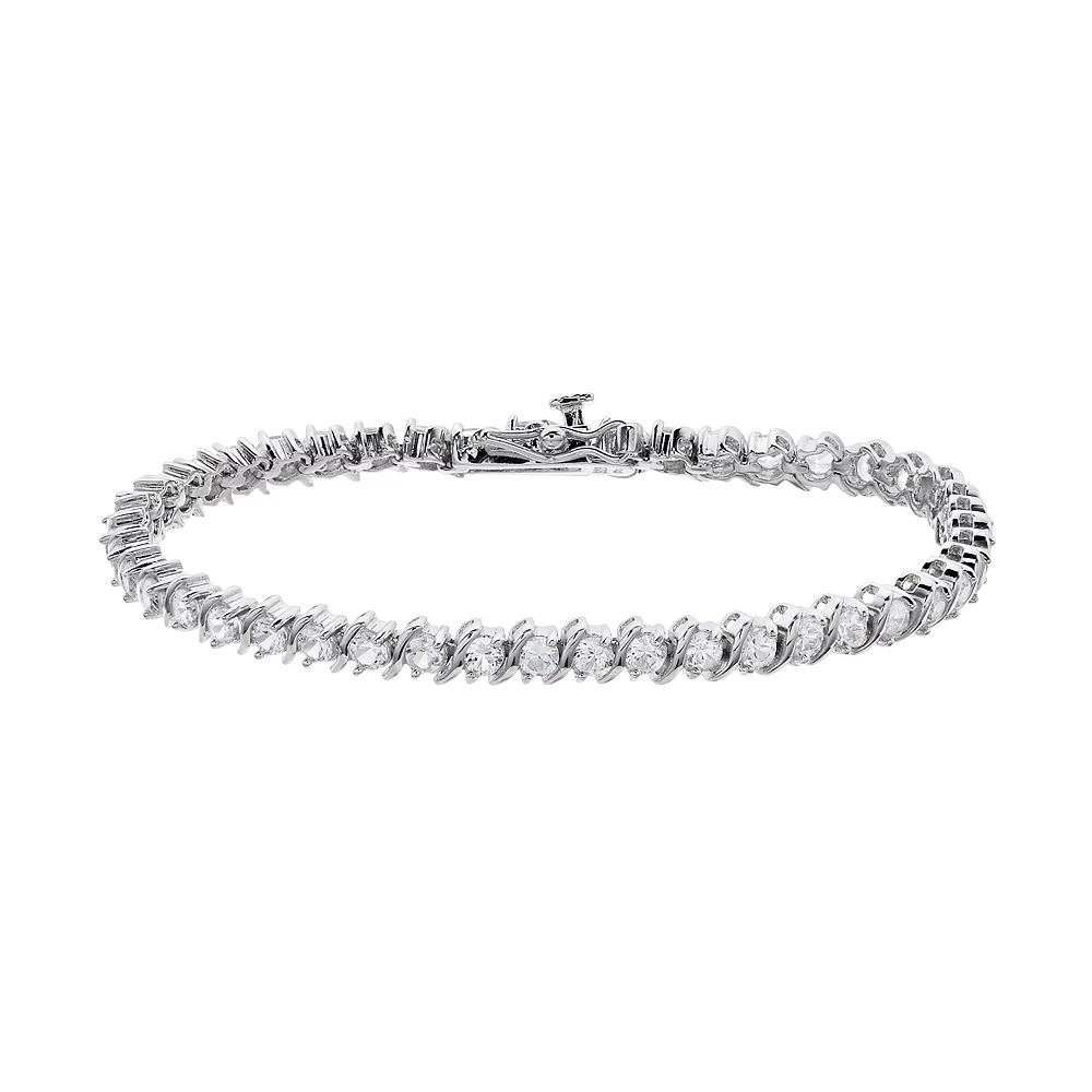 Designed with a row of round-cut, lab-created white sapphire stones, this tennis bracelet is the epitome of elegant style. Comes in a gift box.