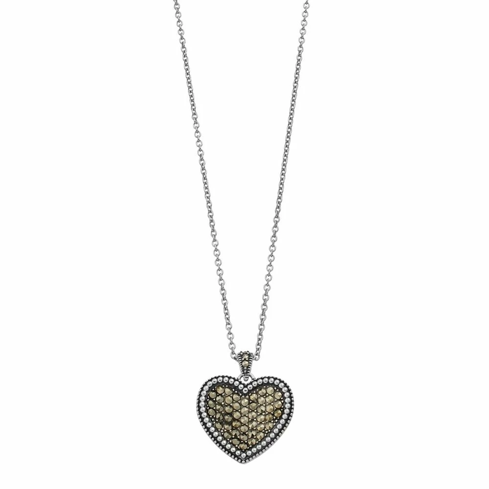 Adorned with marcasite gemstones, this Lavish by TJM heart pendant is a charming accessory that complements any outfit.