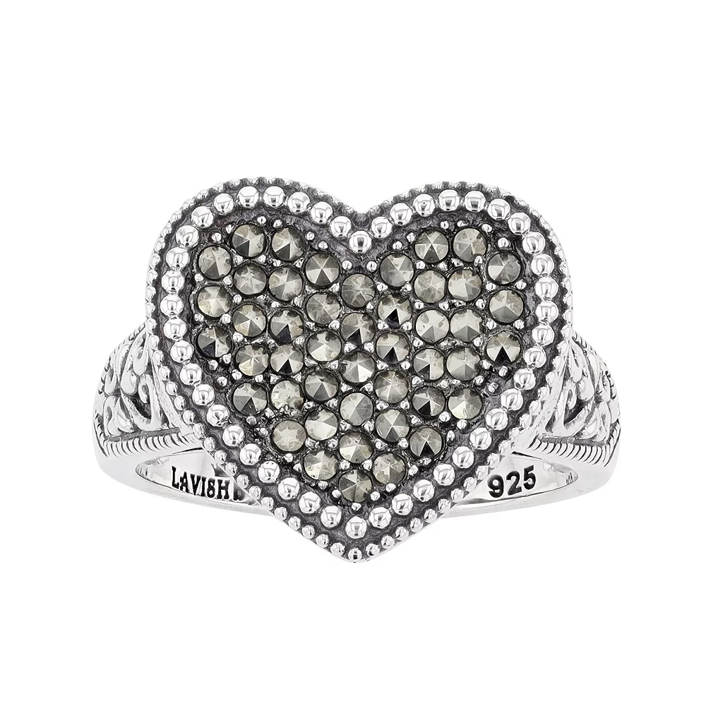 You’re sure to charm every time you pair this Lavish by TJM marcasite heart ring.