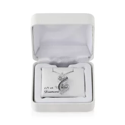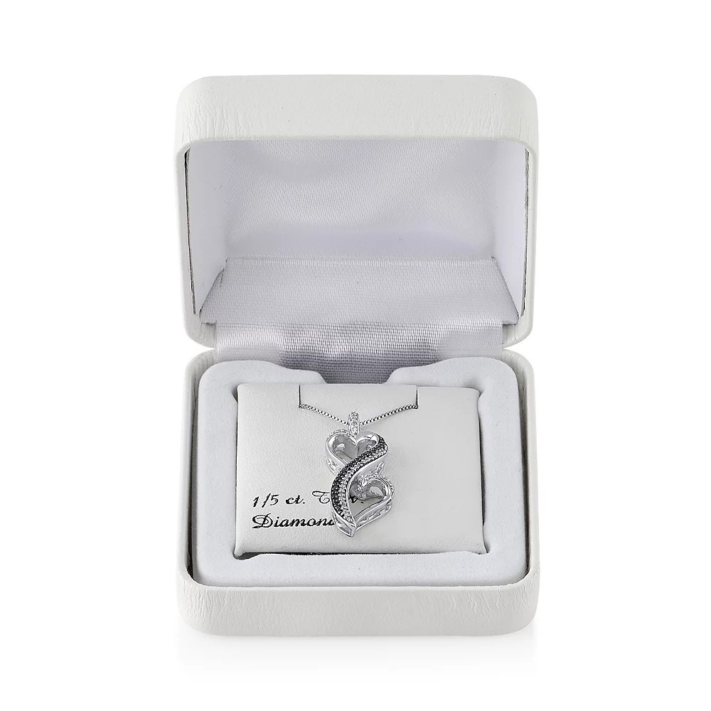 Black and white diamonds adorning a double-heart design make this Love Is Forever pendant a lovely addition to any ensemble. The scrollwork setting adds to the enchanting beauty of this necklace. Comes in a gift box.