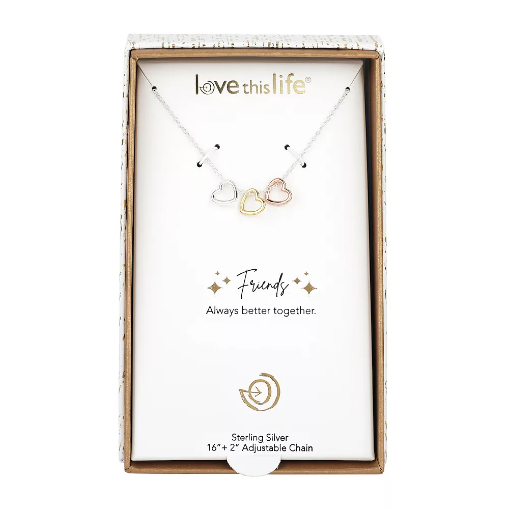 Create a perfectly accessorized look, starting with this Love This Life tri-tone heart necklace.