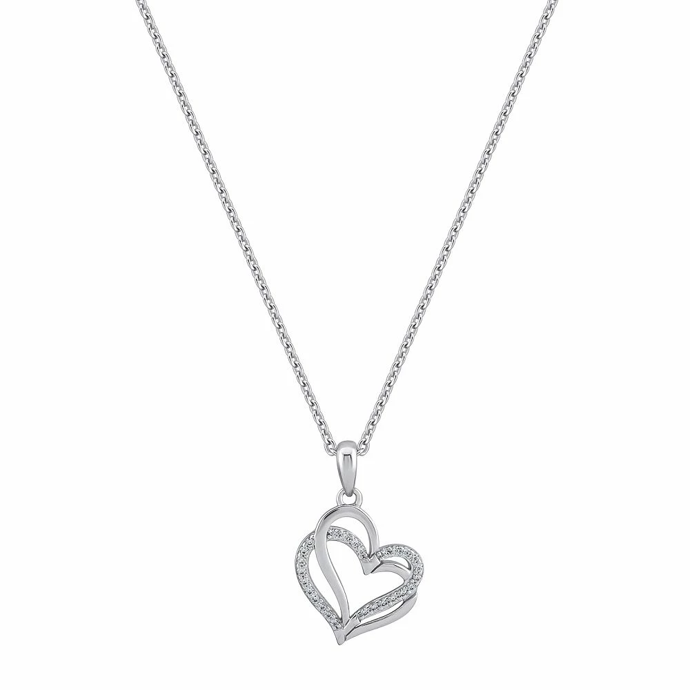 Add a touch of modern love to your jewelry collection with this OLIVIA AND HARPER polished sterling silver and cubic zirconia double open heart pendant necklace.
