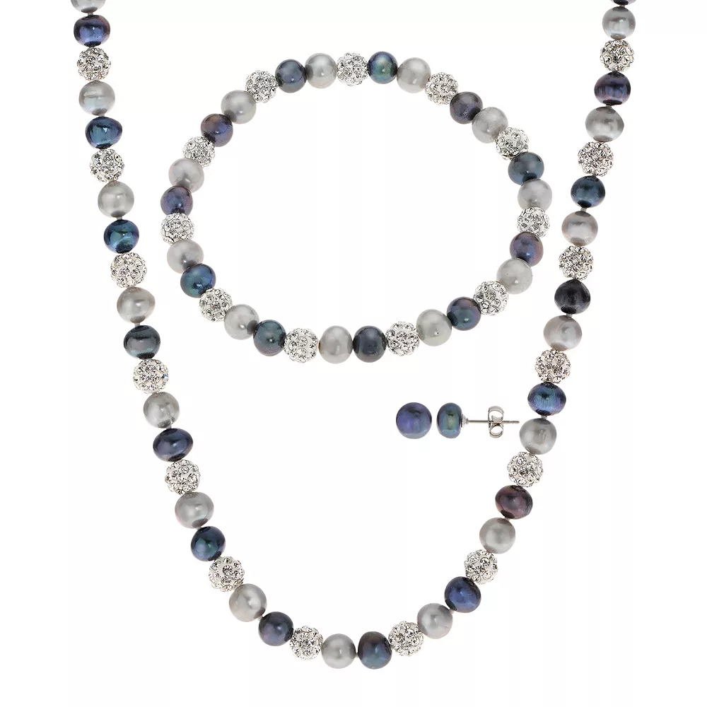 Adorned with gray and black ringed cultured pearls and clay crystal beads, this PearLustre by Imperial necklace, bracelet and earring set is a stylish addition to your jewelry collection.