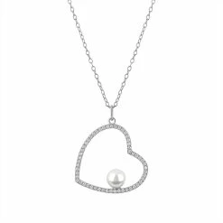 Show her just how much she means to you with this cubic zirconia and simulated pearl-studded PRIMROSE sterling silver open heart pendant necklace.