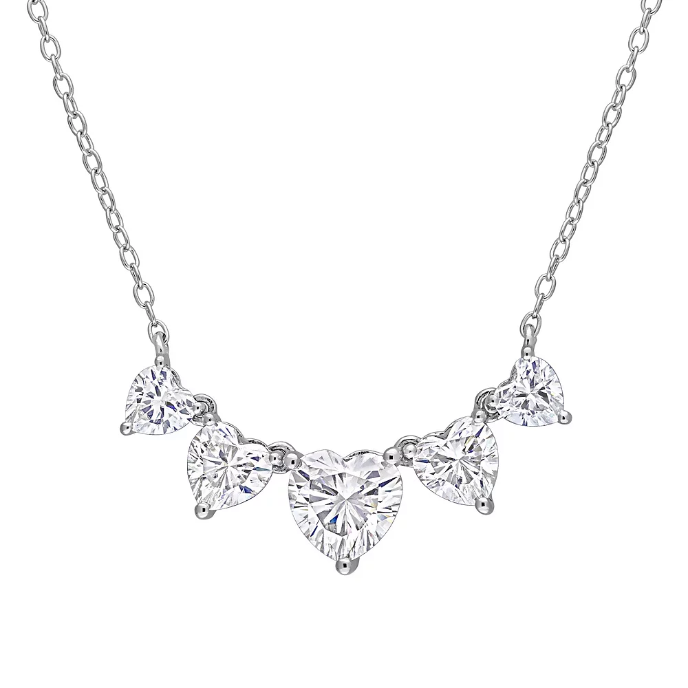 Featuring a five-heart design with lab-created moissanite gemstones, this Stella Grace necklace makes an enchanting gift.
