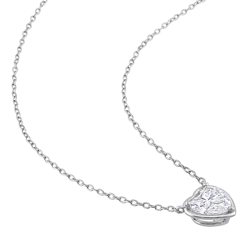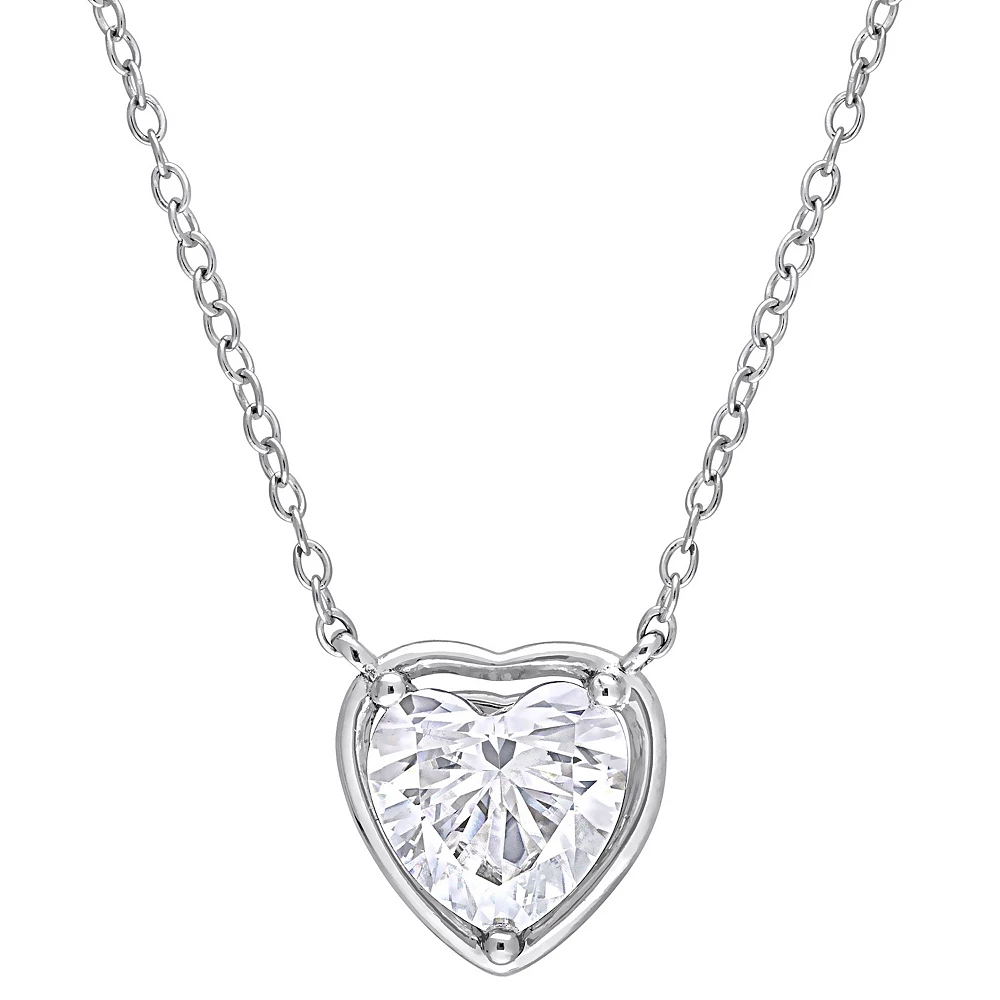 Decorated with a heart-shaped, lab-created moissanite center stone, this Stella Grace necklace sparkles from every angle.