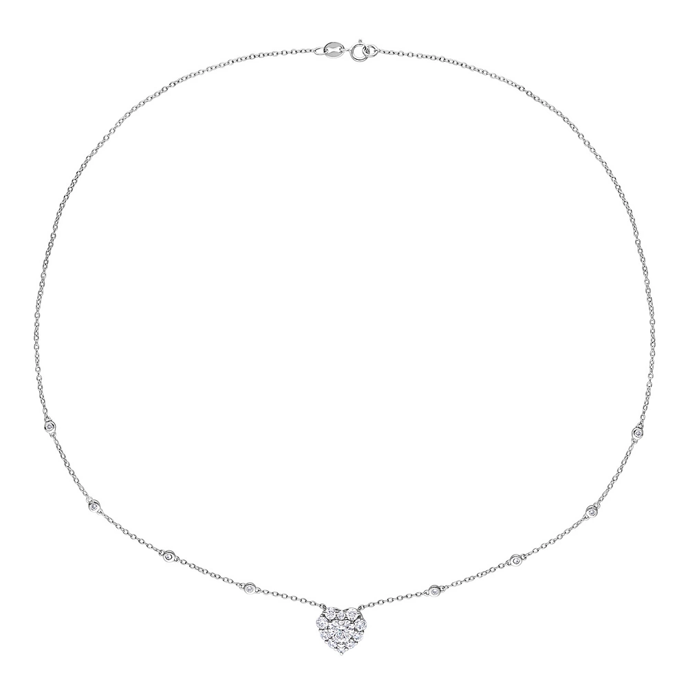 Decorated with a dazzling, lab-created moissanite center stone and accents, this Stella Grace halo heart necklace is sure to draw attention.