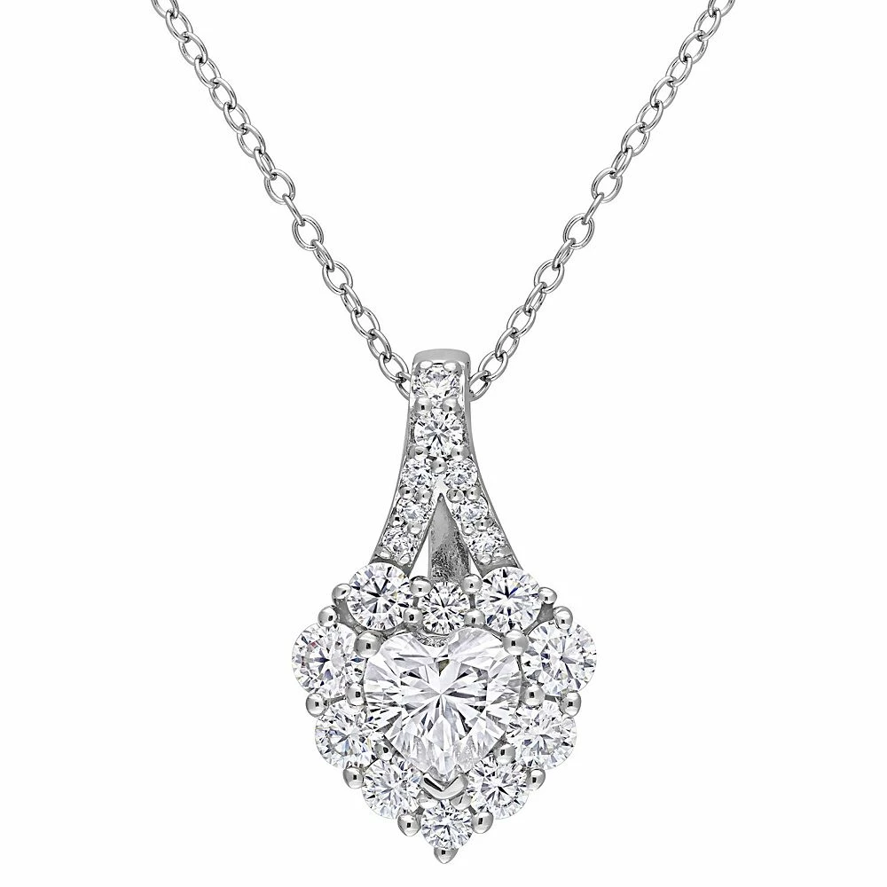 Decorated with a dazzling, lab-created moissanite center stone and accents, this Stella Grace halo heart necklace is sure to draw attention.