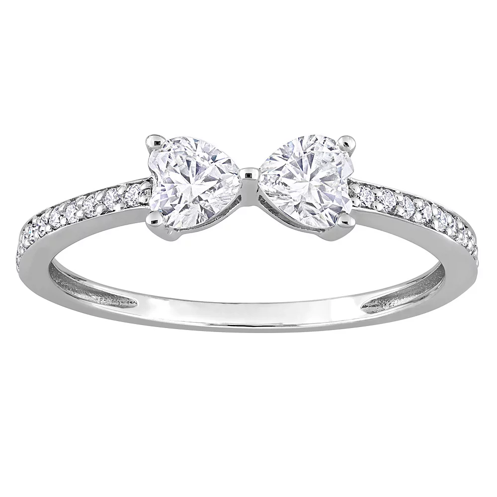 Add a hint of romance to your ensemble when you wear this Stella Grace lab-created moissanite double heart ring.