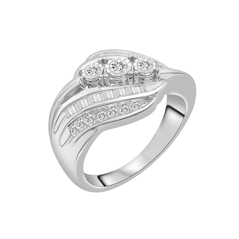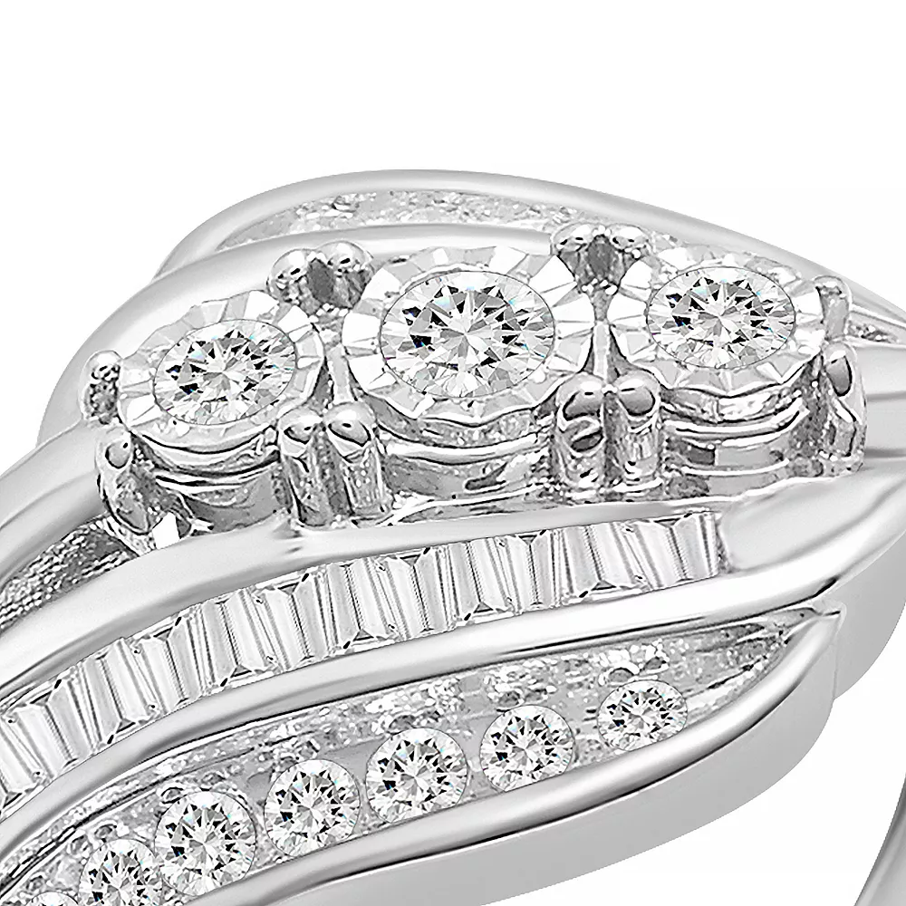 Decorated with shimmering, round-cut diamonds this sterling silver ring is a beautiful complement to your wardrobe.