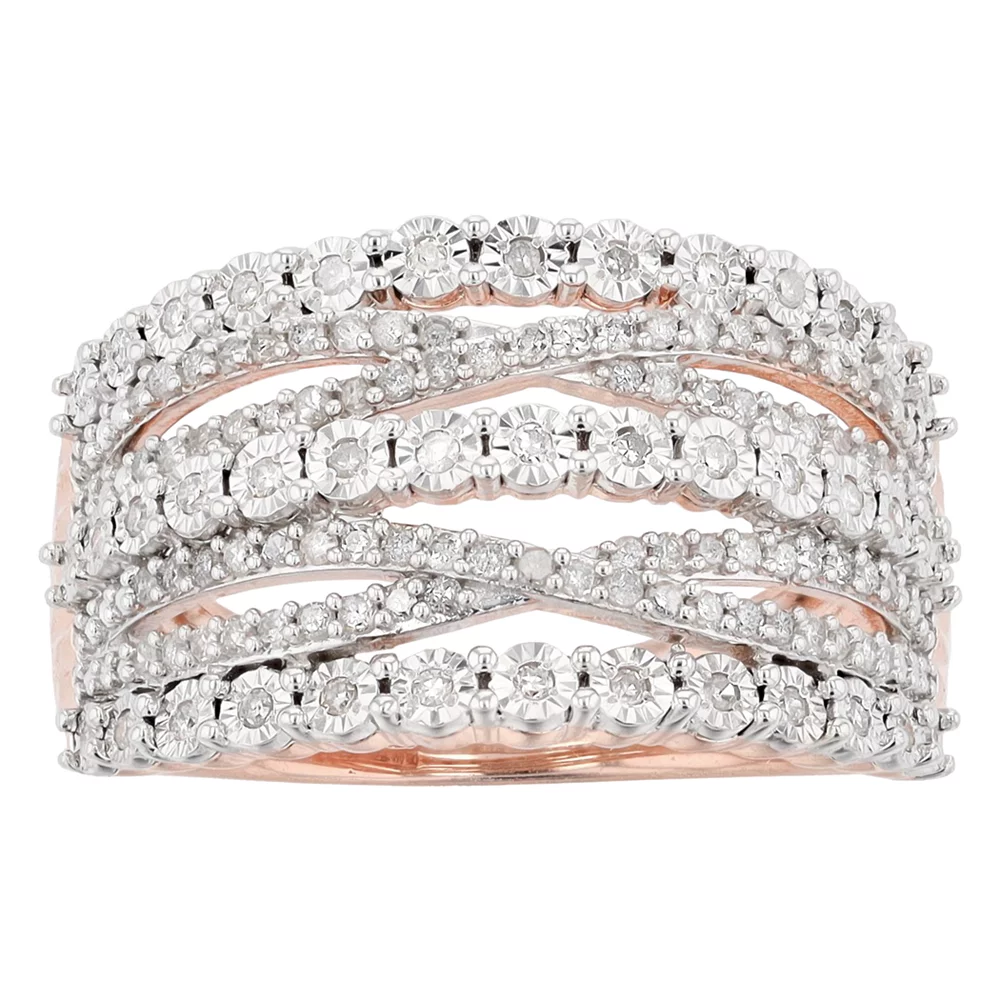 Decorated with rows of shimmering diamonds, this sterling ring beautifully enhances your look.