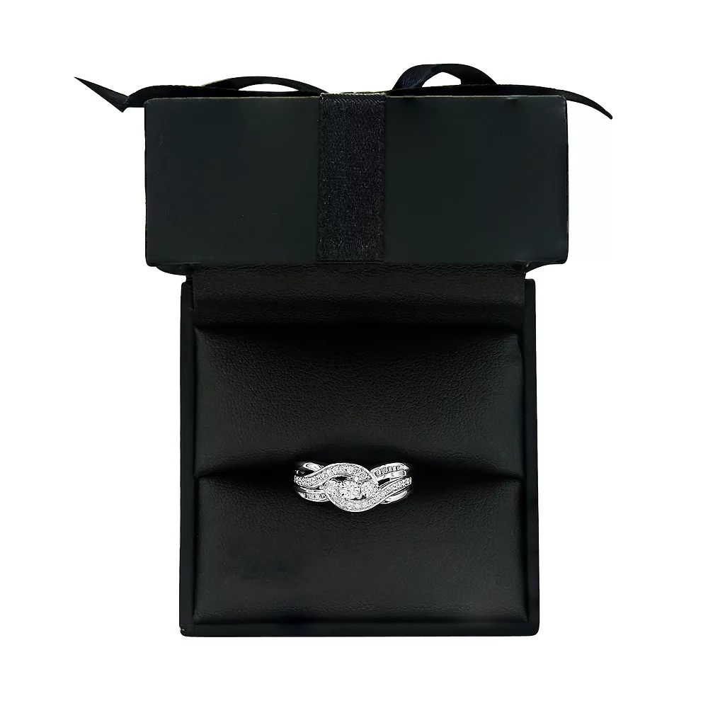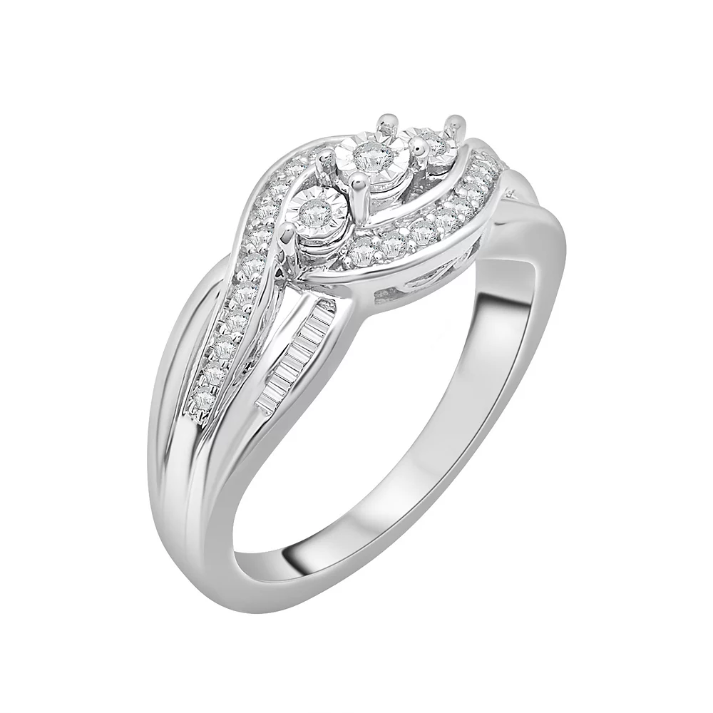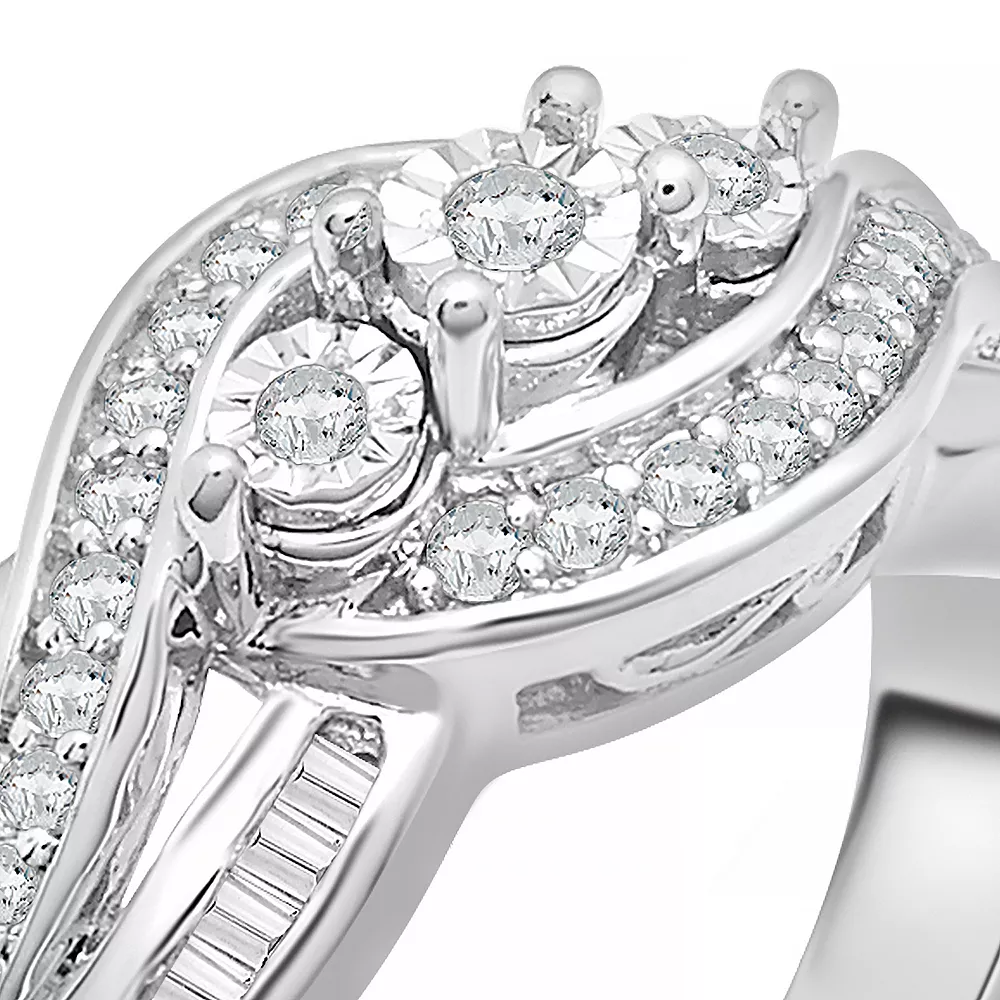 Decorated with shimmering, round-cut diamonds this sterling silver ring is a beautiful complement to your wardrobe.