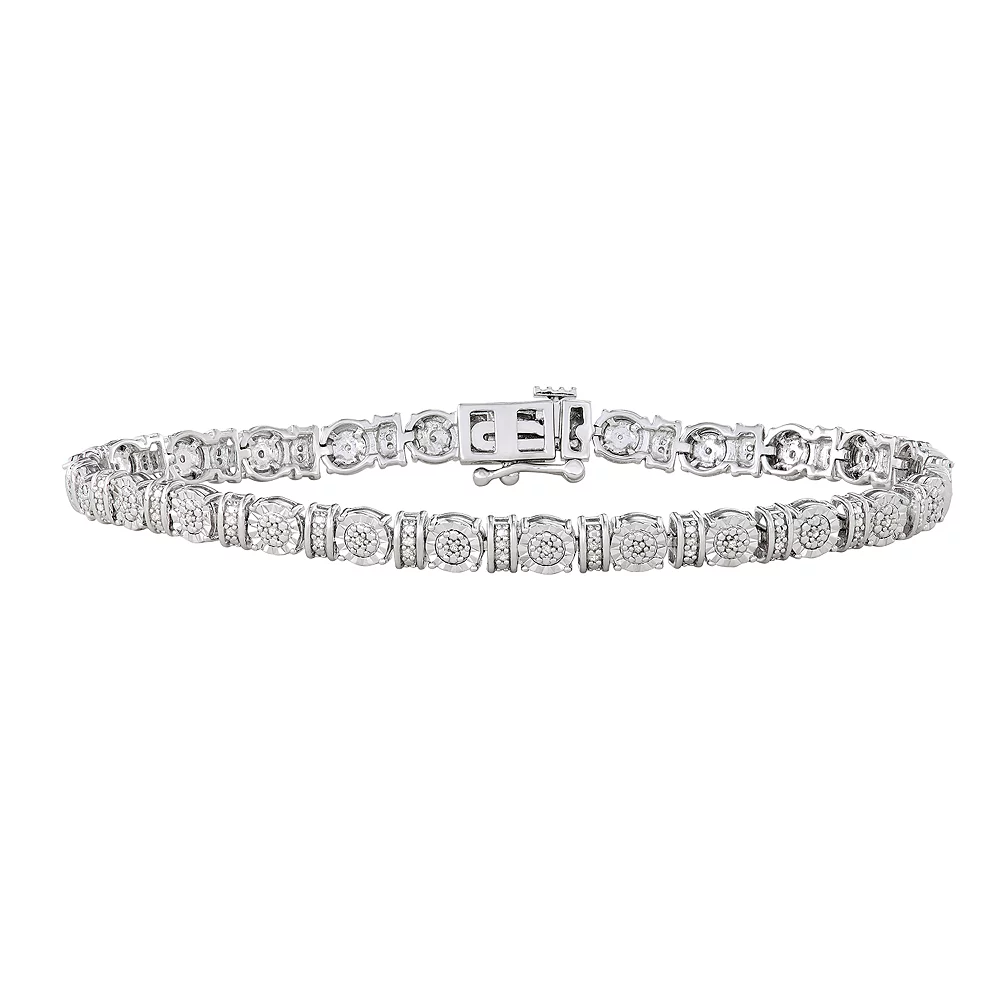 Add a touch of opulence to your wardrobe whenever you don this elegant sterling silver diamond bracelet.