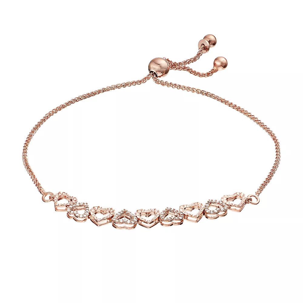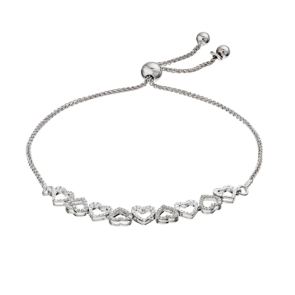 This gorgeous sterling silver diamond hearts bolo bracelet is the perfect way to finish any outfit.