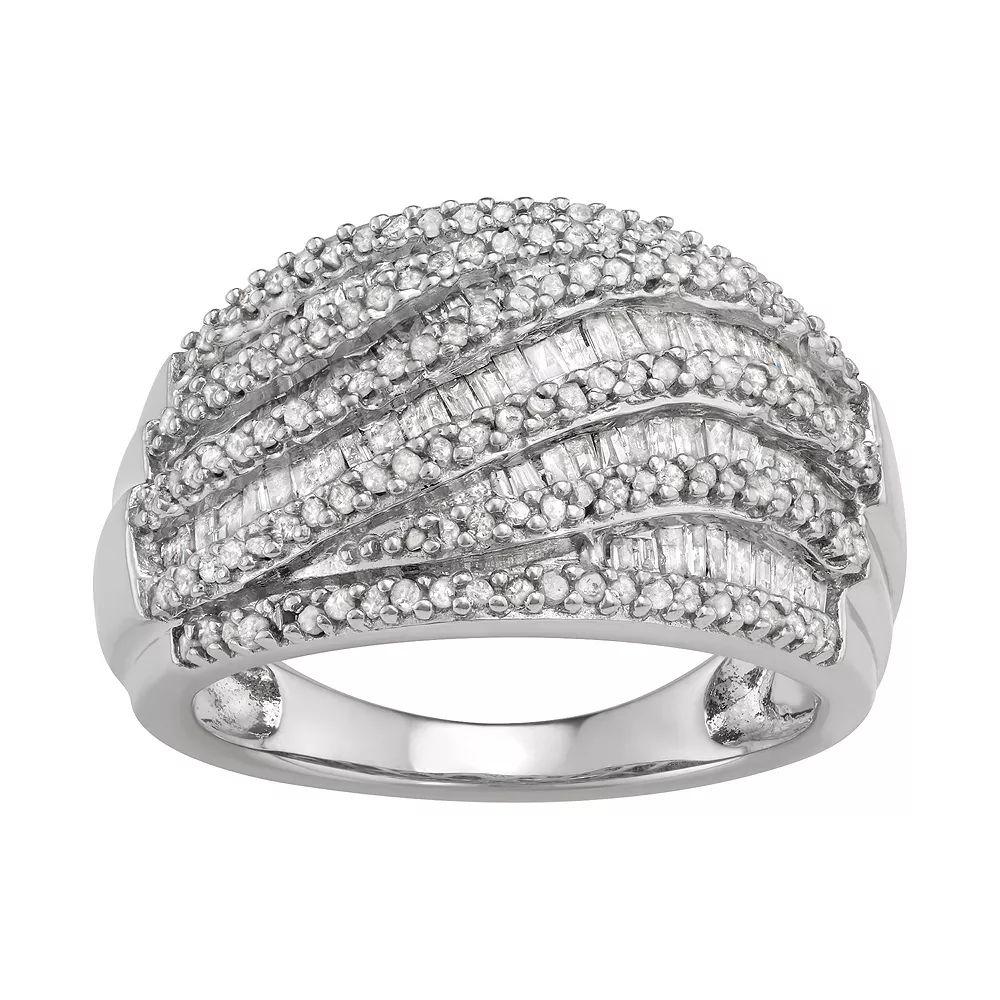 Add contemporary style to your wardrobe with this elegant sterling silver diamond ring.