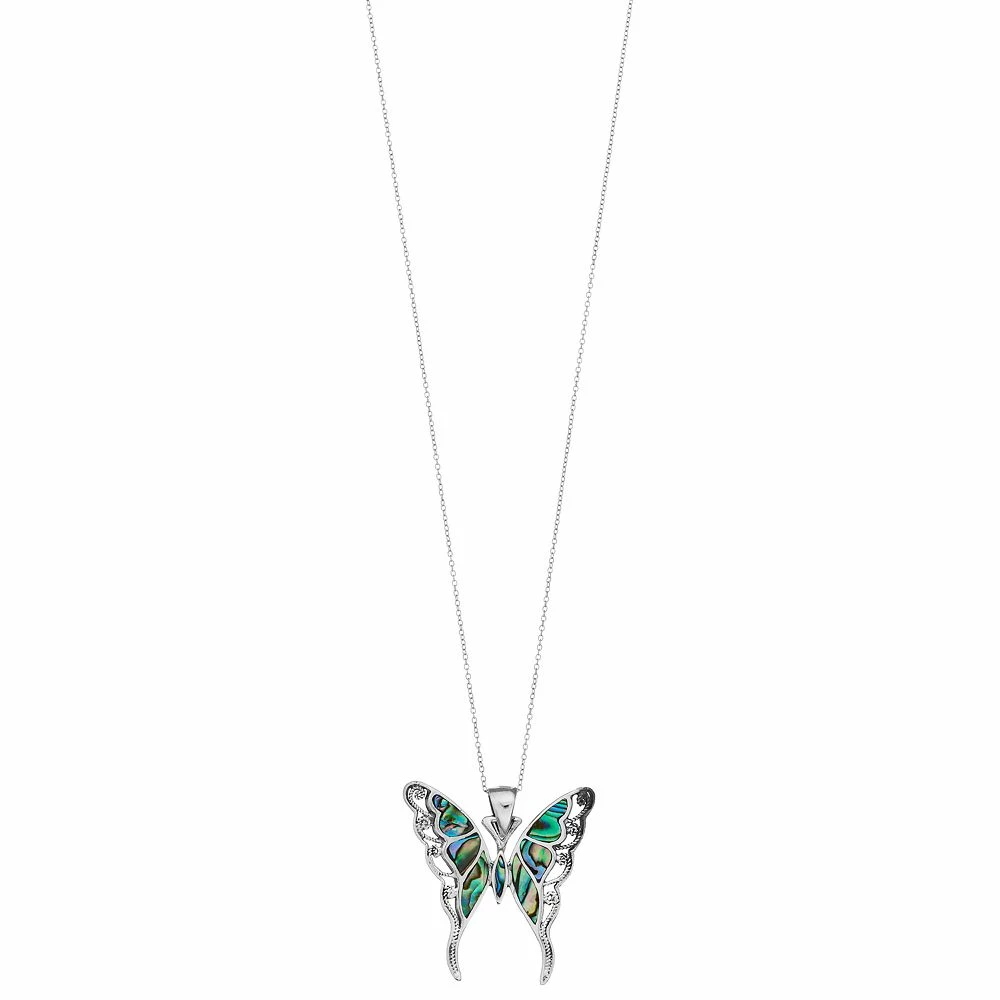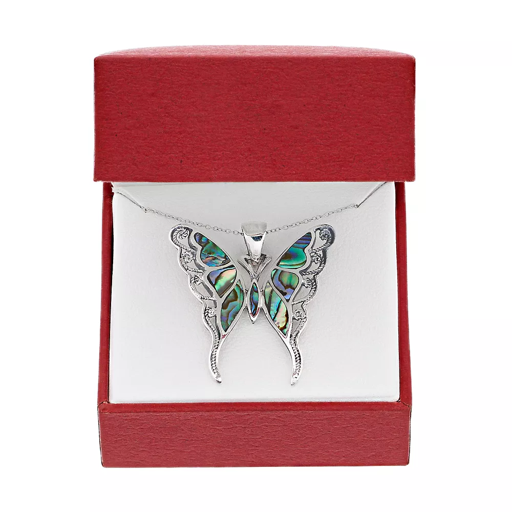 Showcase your soaring sense of style when you add this stunning abalone butterfly pendant to your look.