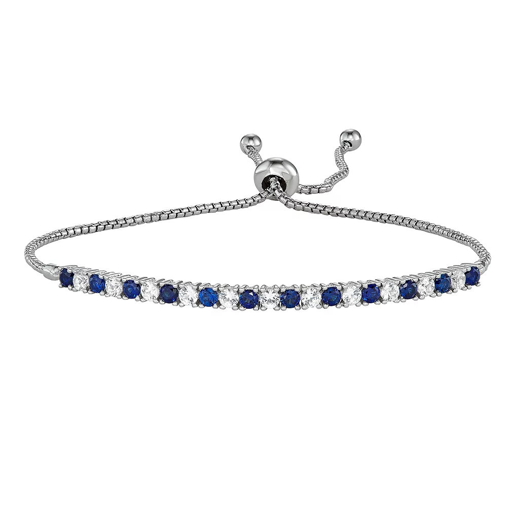 Adorned with alternating blue and white lab-created sapphires, this sterling silver adjustable bracelet is an elegant addition to your look.