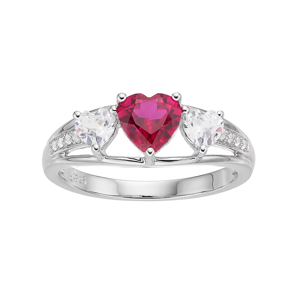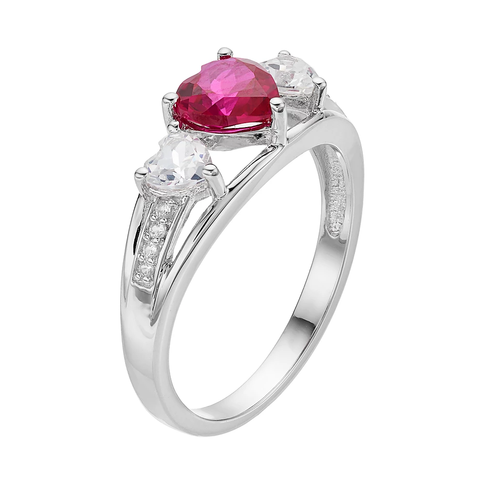 Elevate your ensemble with the breathtaking beauty of this lab-created ruby and white sapphire heart ring.