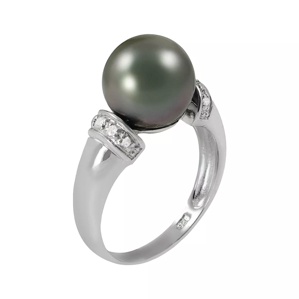 Regal ring. Add glamour to your look with this sterling silver Tahitian cultured pearl and white topaz ring.