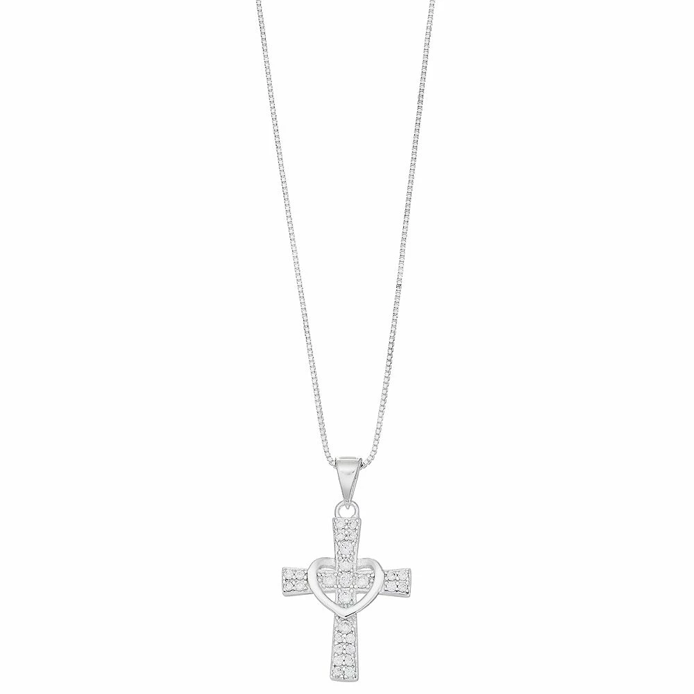 Showcase your faith in a beautiful way with this Timeless Sterling Silver CZ heart cross pendant.