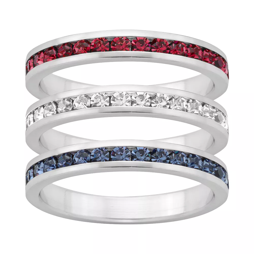 Stack these red, white and blue crystal eternity rings on your finger for a patriotic look. Comes in a gift pouch.