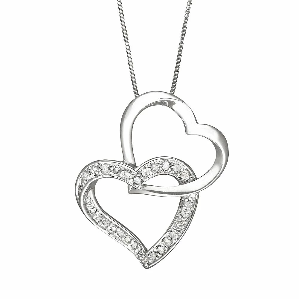 Take her breath away with this diamond interlocking double-heart pendant. Comes in a gift box.